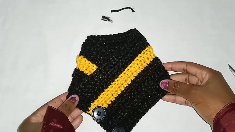 - Sew buttons securely to the cowl with needle and thread.