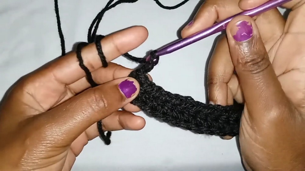 - Yarn over, hdc in the 3rd ch from hook, and in every ch across.