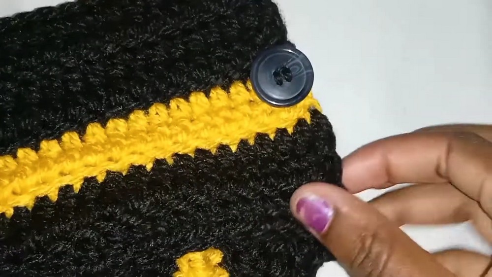 - Sew through both yarn and buttonholes.
