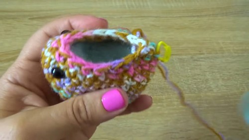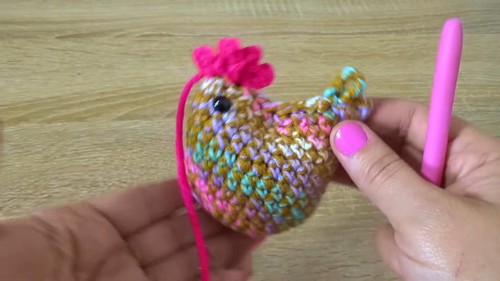 - Attach with sl st on opposite rim side. FO, leaving a long tail to sew chicken in.