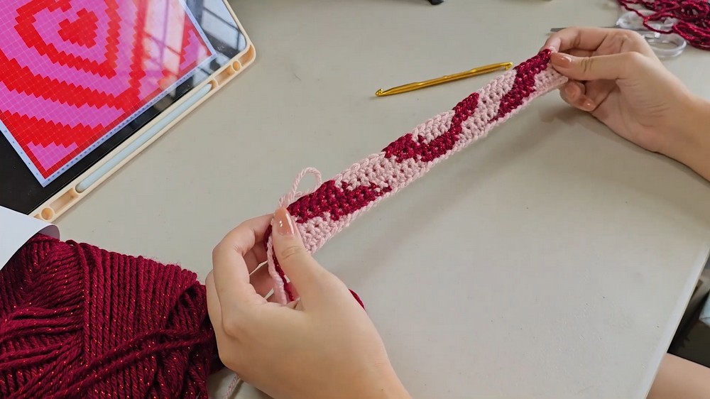 - Work in Rows of sc: Use tapestry crochet method to follow a heart chart (available on Pinterest or in similar tapestry patterns).