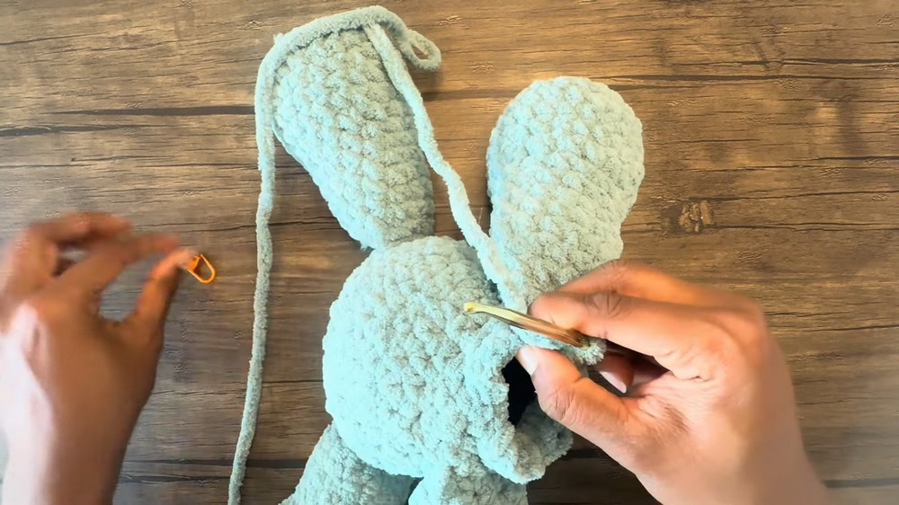 - Stuff the leg with fiberfill or yarn scraps.