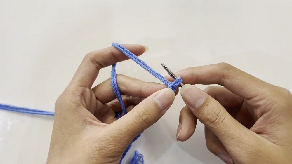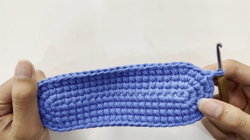 Begin working on the bag by starting with its base. Using a foundation chain, you’ll shape an oval base with single crochet stitches.