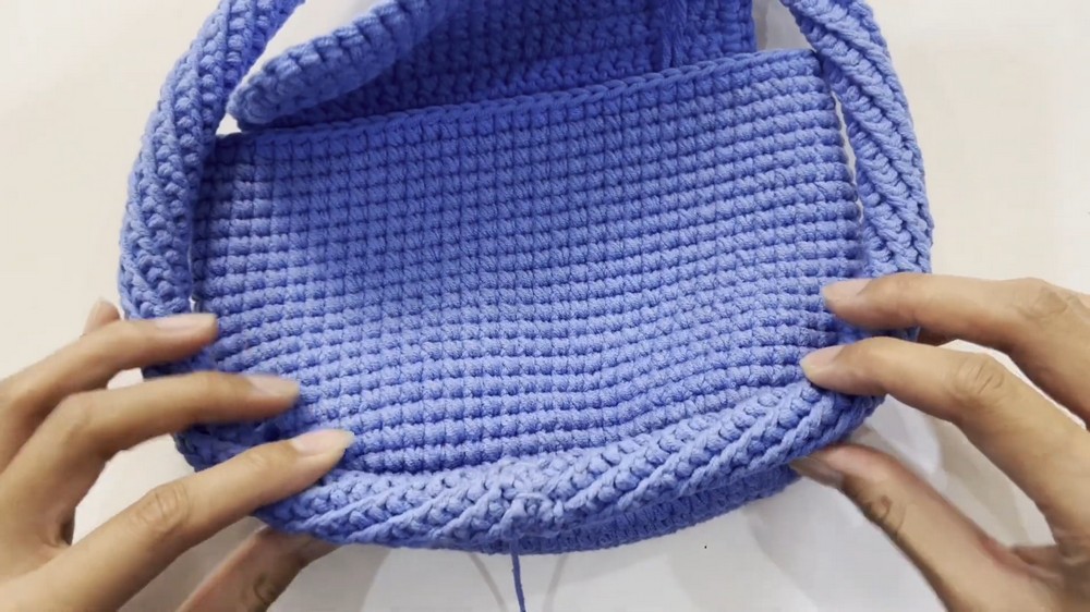 The rim’s edge requires neat stitches such as single crochet or slip stitch to complete the bag’s body, resulting in a clean top finish.