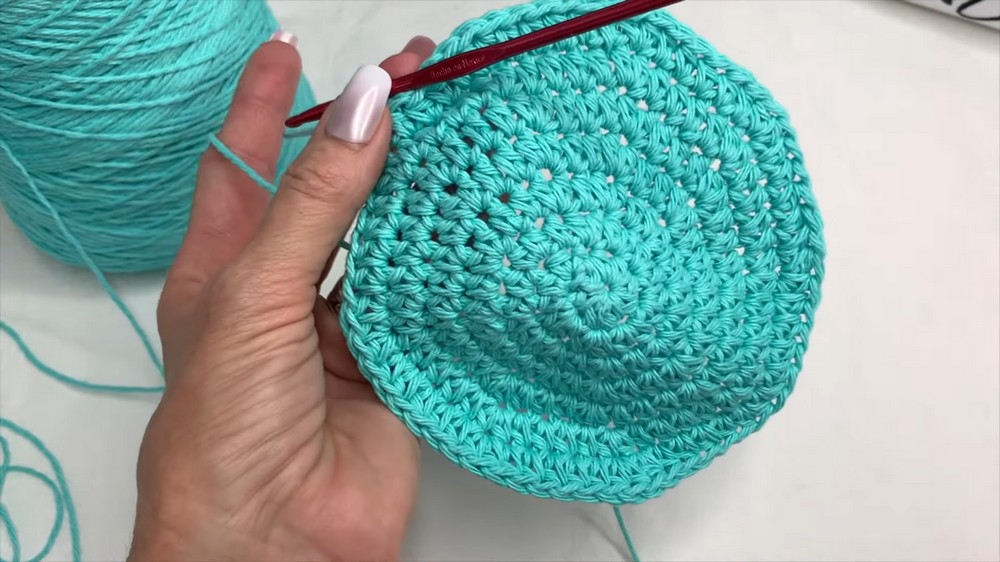 Continue alternating an increase round (add 1 sc between each increase for each new increase round) with a plain round until your brim reaches the desired width—typically 10–13 rounds for a wide floppy sunhat.