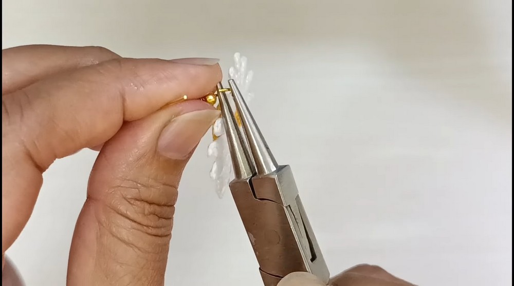 Once your flower is complete, finish off, edges neatly, and use a jump ring to attach earring hooks securely. Adding decorative embellishments, like beads or pearls, can give the earrings a stylish touch.