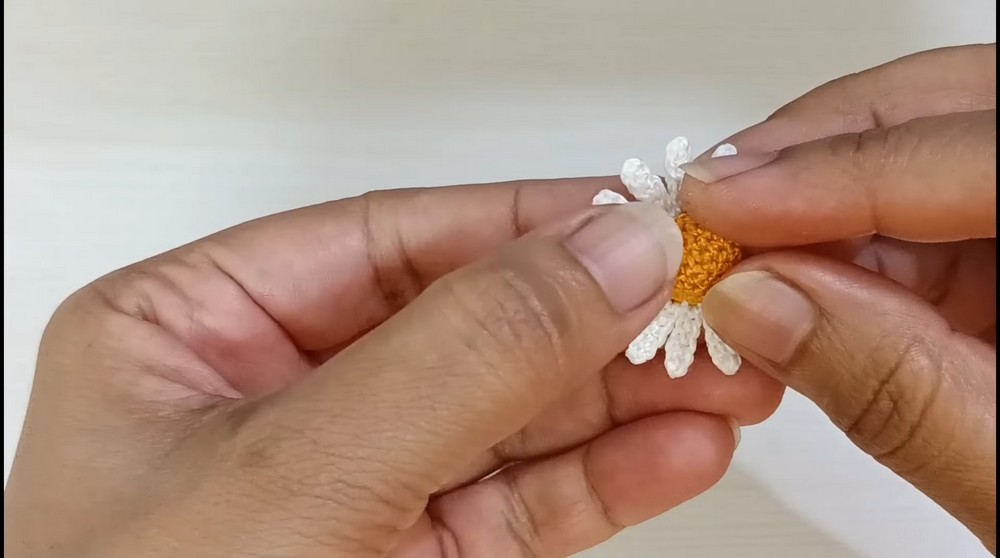 Gradually form individual petals by using foundational stitches like single crochets, half double crochets, or double crochets as described in the tutorial. It’s helpful to count your stitches carefully to ensure the pattern remains symmetrical.