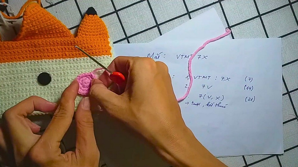 For straps, simple techniques like chain stitching or braiding are used, with adjustments for the desired length. Beginners are encouraged to take their time when switching colors to achieve clean transitions for the fox’s body and facial accents. Stitch markers also play an important role in keeping track of progress during the pattern.