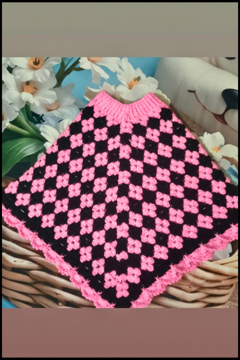 Congratulations on completing this adorable two-tone little girl’s crochet poncho! The alternating colors and bud stitch clusters create a lively, cute look perfect for any occasion. The design is adaptable—change yarn weight, color order, or size for countless variations. With a soft drape, it’s a comfortable, stylish layer for any child.