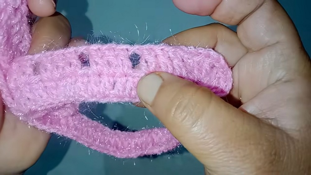 - With Color A (Pink) and 4 mm hook, ch 84, making sure chain is not twisted.