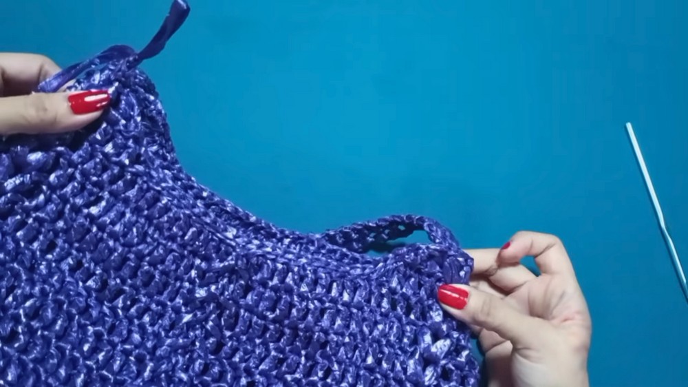 To ensure the bag maintains a sturdy body, consistent tension while working with raffia is essential, as its firmness can make handling a bit trickier than traditional yarn.