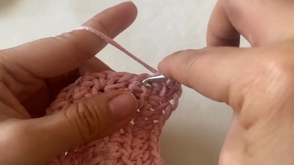 The pattern follows a structured process, using basic crochet techniques to form a sturdy and compact design. It begins with a foundation chain that determines the bag’s size, followed by rows of half double crochet stitches to build its main body.