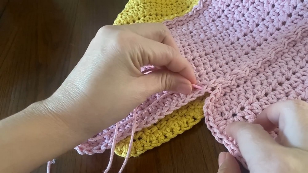 The neat edges are achieved with clean single crochet stitches that enhance the durability and aesthetic appeal of the bag. When adding pieces together, use a sturdy yarn needle and make tight yet flexible seams to avoid looseness while maintaining elasticity for everyday wear.