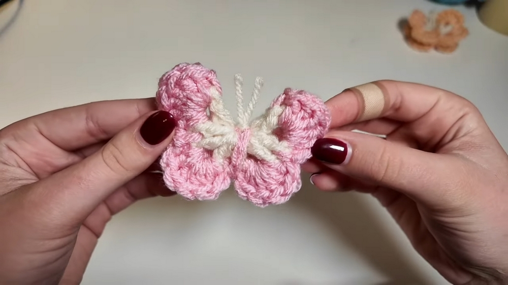 The creation process begins with forming the butterfly’s wings using simple crochet stitches, carefully shaping each side to achieve symmetry and a delicate appearance. The body is then stitched in a contrasting or complementary color, connecting the wings securely. Additional details, such as antennae, can be added with fine yarn or thread, completing the miniature form. Each step encourages patience and precision, making it a satisfying and mindful project for both beginners and experienced crocheters.