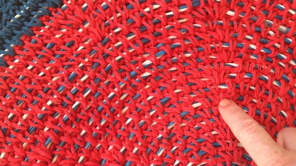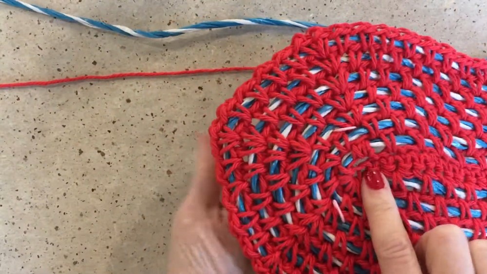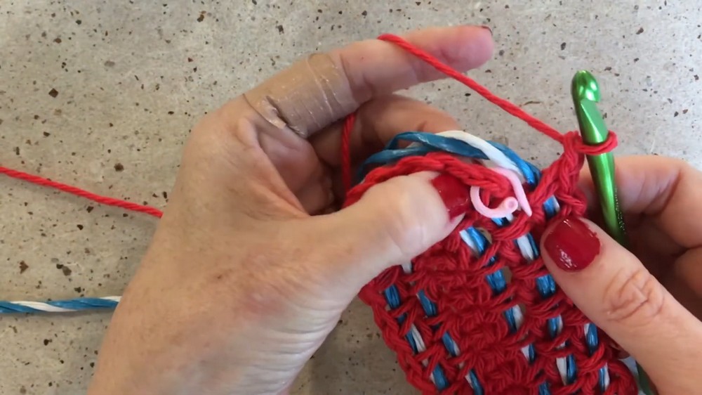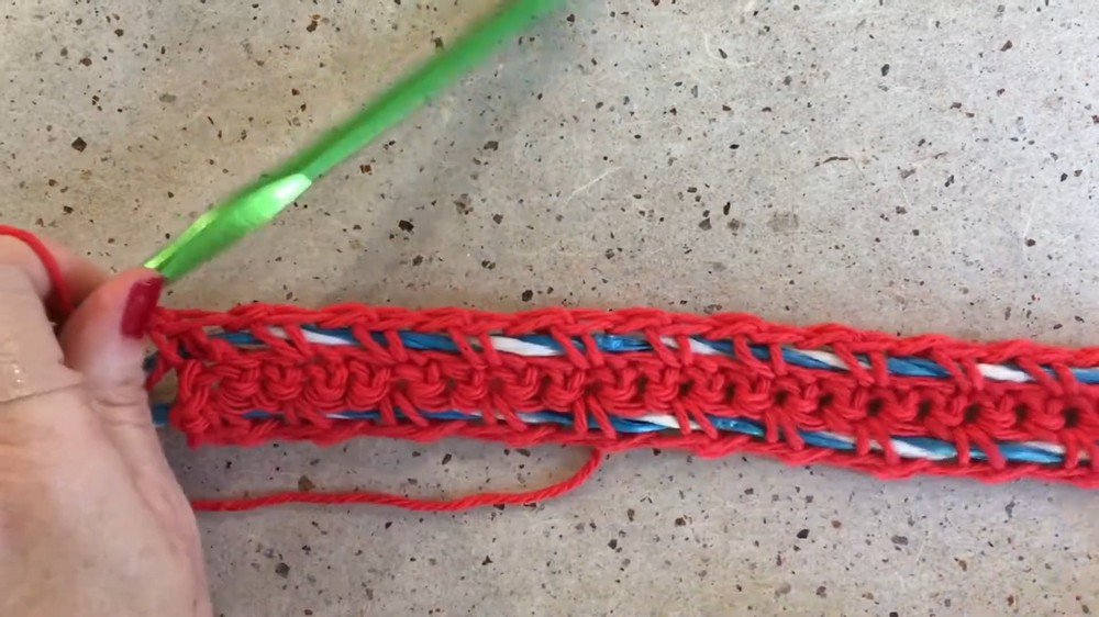 - Work 2 rounds in mesh pattern as above, continuing to work over the clothesline if remaining.