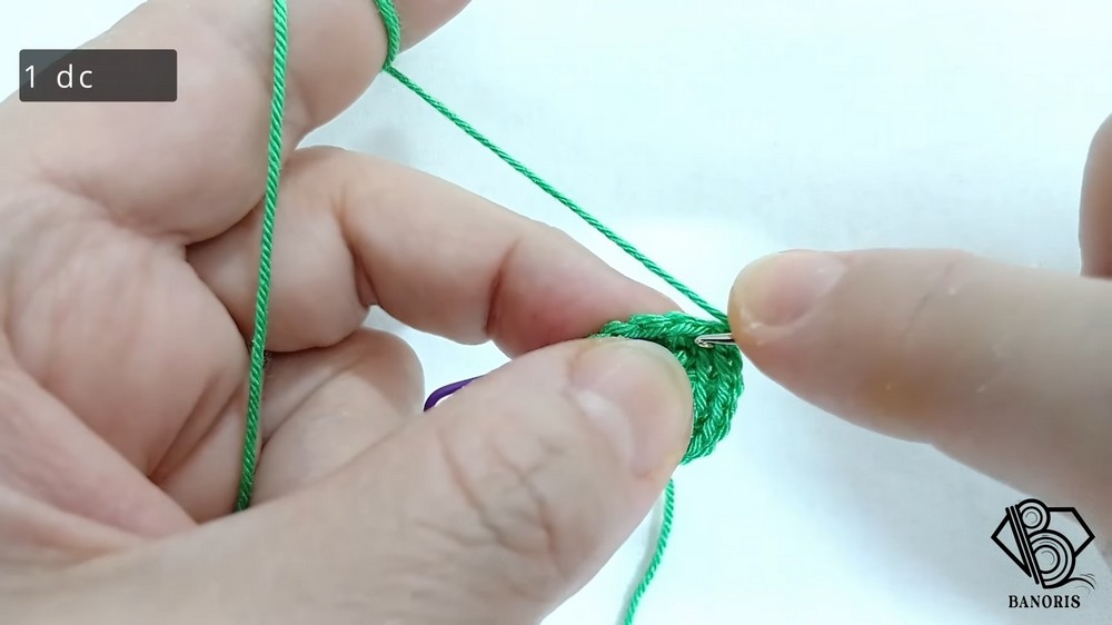 - Start with 2 chains in the next stitch. Crochet 1 double crochet.