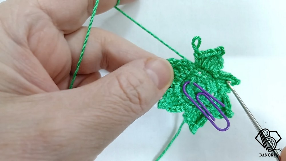 - In the third stitch, crochet 1 double crochet, chain 2 stitches, and close with a slip stitch.