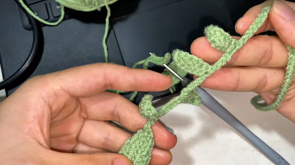 Gradually, the body of the bag emerges as taller stitches, like double crochet, are introduced to build its structure. The distinctive tulip petals are created by switching to contrasting yarn for added texture and visual interest.