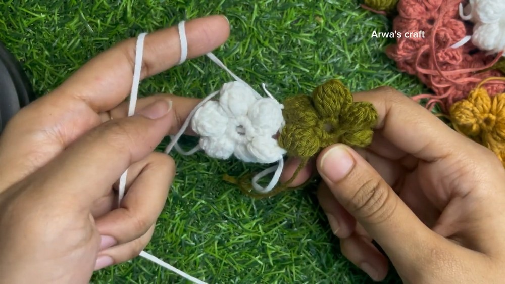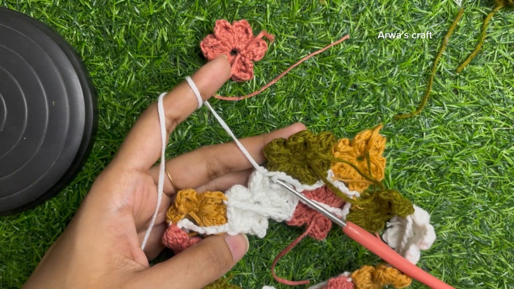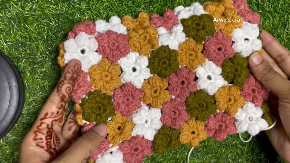 The pattern begins with a simple base using chain stitches and single or double crochets. After crafting the initial foundation, the flower motifs are made using techniques such as slip stitches, magic loops, and puff stitches to construct vibrant petals.