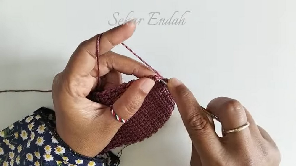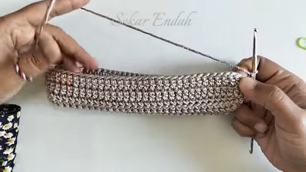 - Work single crochets around the base, starting from one end to the marker.