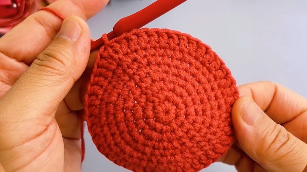 The process begins with a magic ring to create a rounded base, followed by rounds of alternating increasing stitches to expand the size.