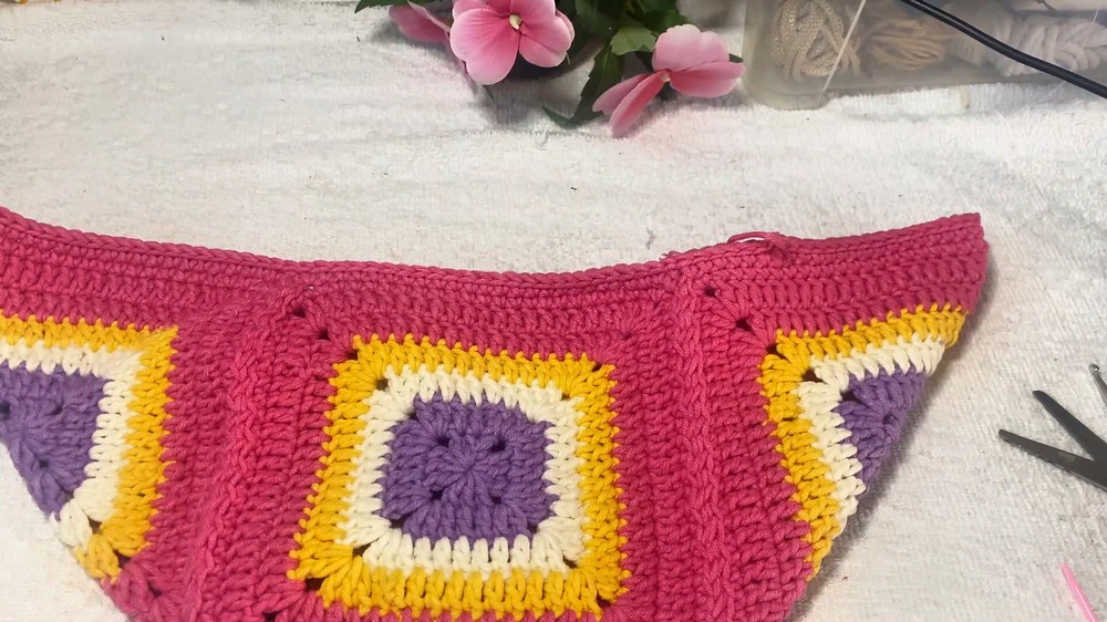 Always carry your yarn behind as you crochet to ensure a clean and polished look for your granny squares. This small detail enhances the overall appearance of the completed bag.