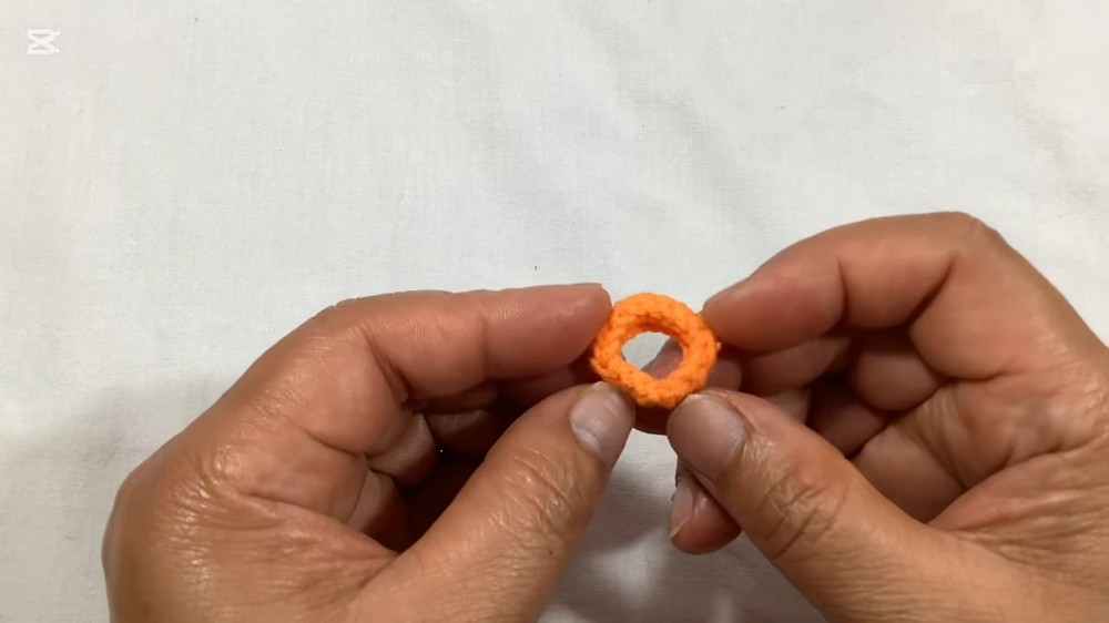 - Crochet 6 single crochets (sc) into the circle. Pull tight to close the circle.