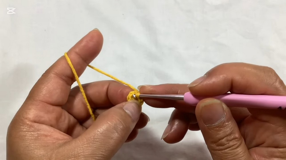 - Begin with a magic circle using yellow yarn.