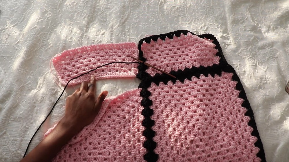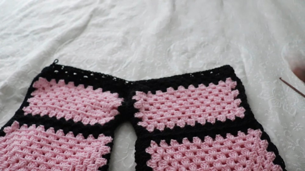 - If you desire a “baggy” versus “fitted” look, adjust the number of granny square rounds and panels.