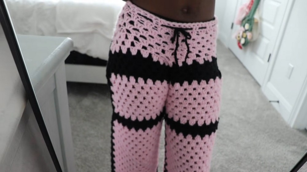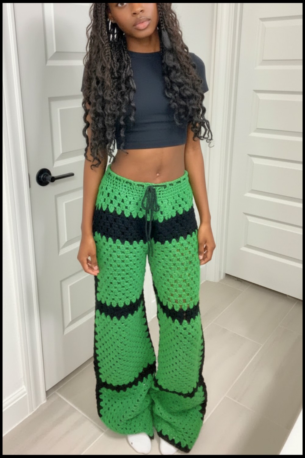 You have now created a custom pair of granny square crochet pants, designed for flexibility of fit and highly customizable. The strategic placement of decreases and stable rows ensures a secure, flattering waistband, while the modular construction allows adaptation for size and style.