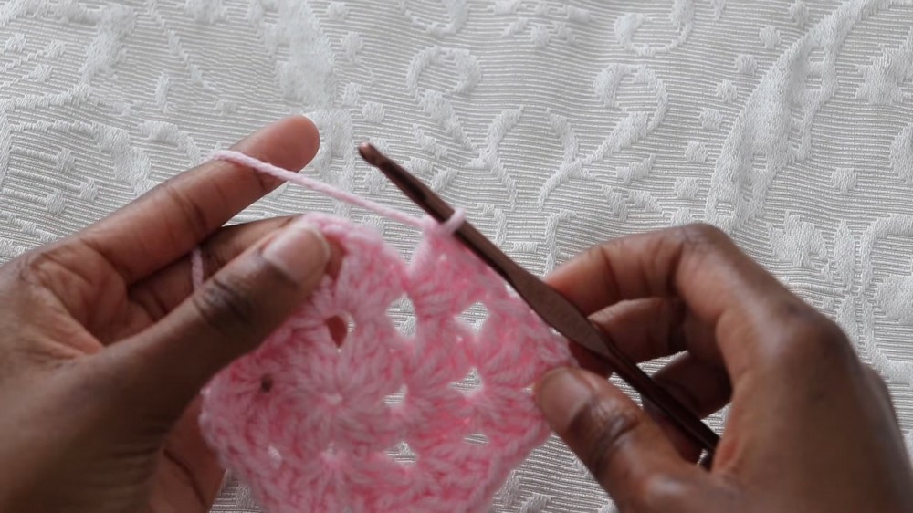 - (3 dc, ch 2, 3 dc) in the corner (to mimic a granny square’s corner),