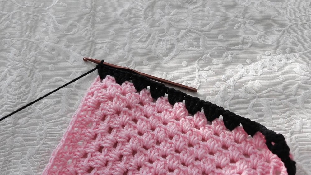 - Repeat for all edges to create a border with granny shell clusters AND corners.