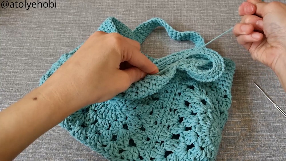 These motifs come together to form the cube-shaped design of the bag, offering both volume and structure. The handle is made by working single crochet rows, and stitch markers can be helpful for alignment. To add durability and aesthetics to the bag, a lining can be inserted, making the inside smoother for daily use.