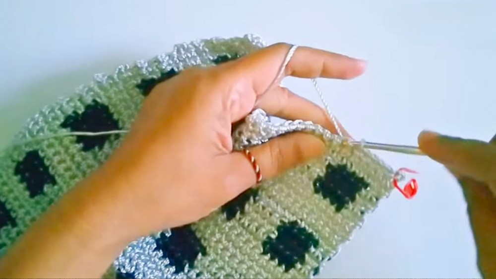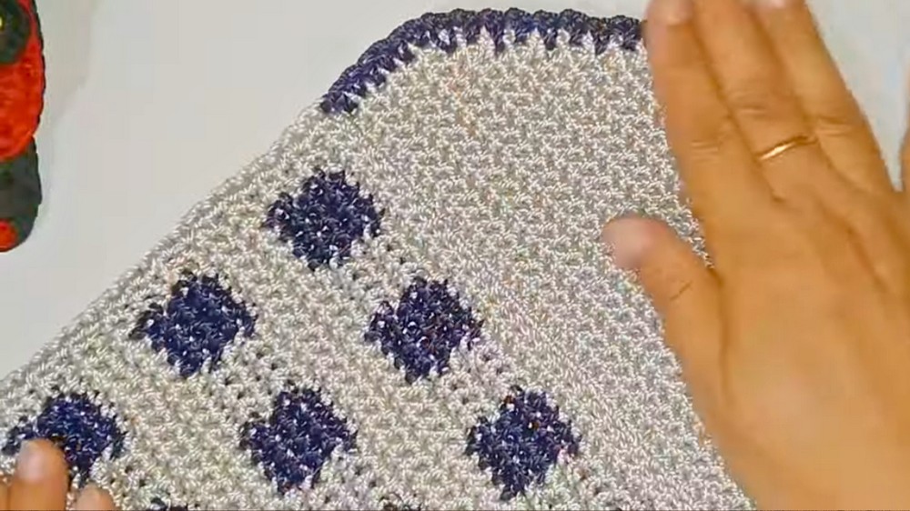 The pattern starts with a base created in rows of single crochet, ensuring stability and a neat foundation. The motif section follows, alternating between two colors to form an attractive pattern. Rows are worked with smooth transitions, making the color changes seamless and polished.