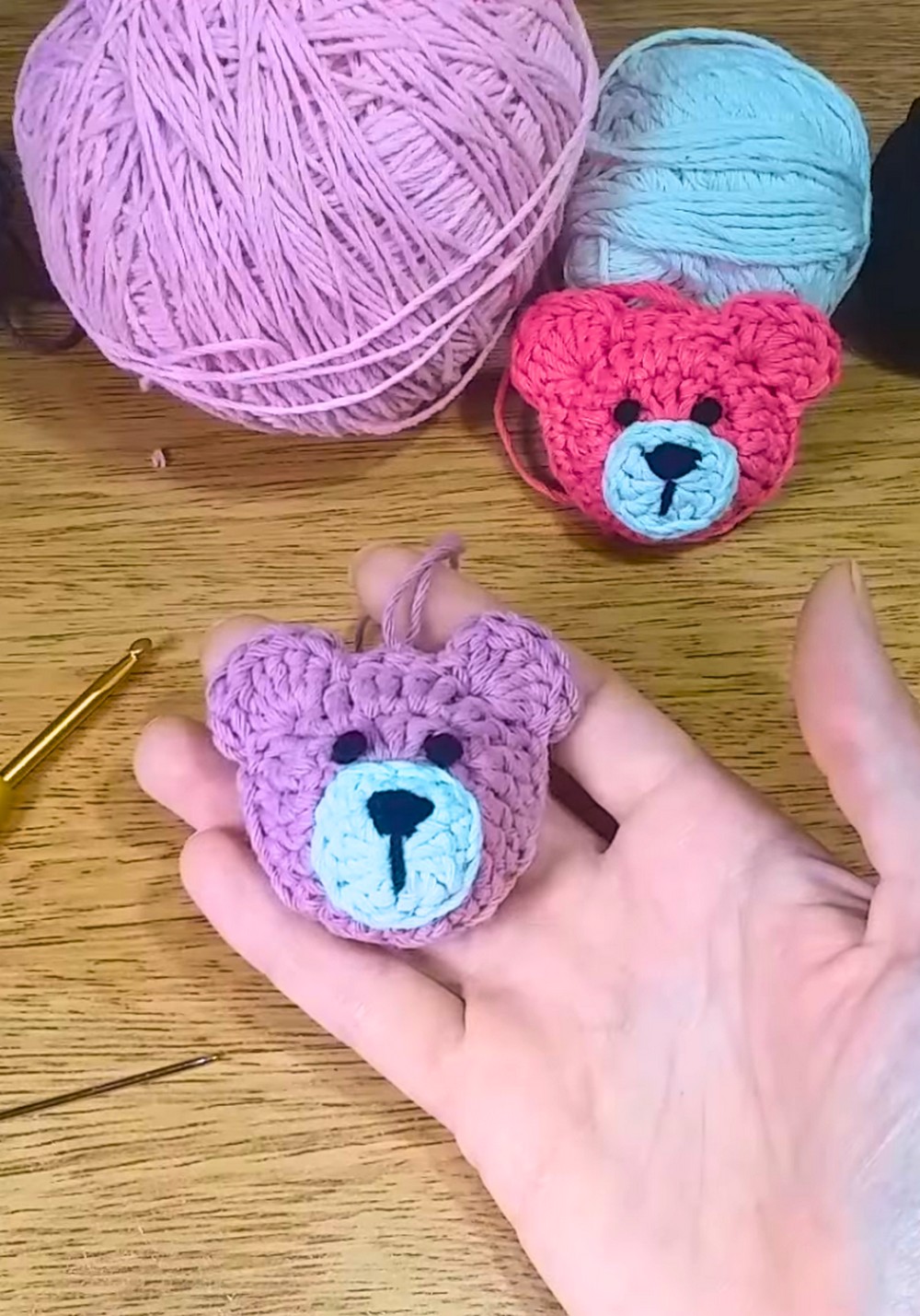 - Yarn (preferably acrylic or cotton, colors: beige or brown for the bear, plus choices for accents)