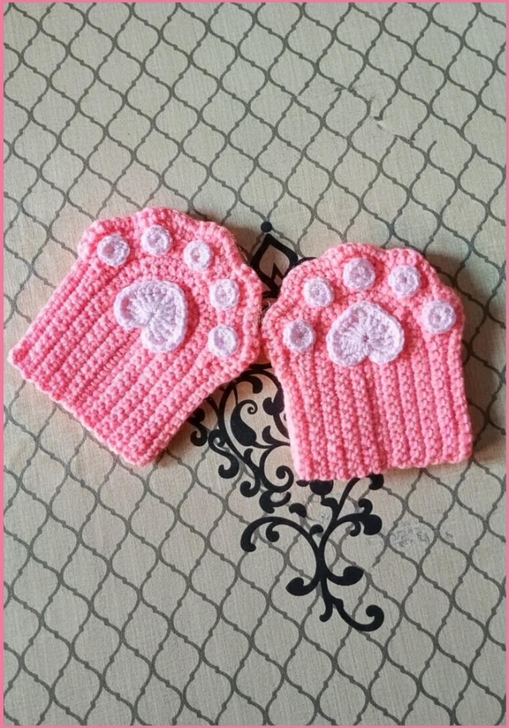 To crochet the pattern begins with a simple base, typically constructed using basic stitches such as single crochet (SC) and double crochet (DC). Following the first rows, patterns in the shape of paw pads emerge, which add character to the gloves.