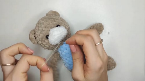 - Sew the bow to the bear.