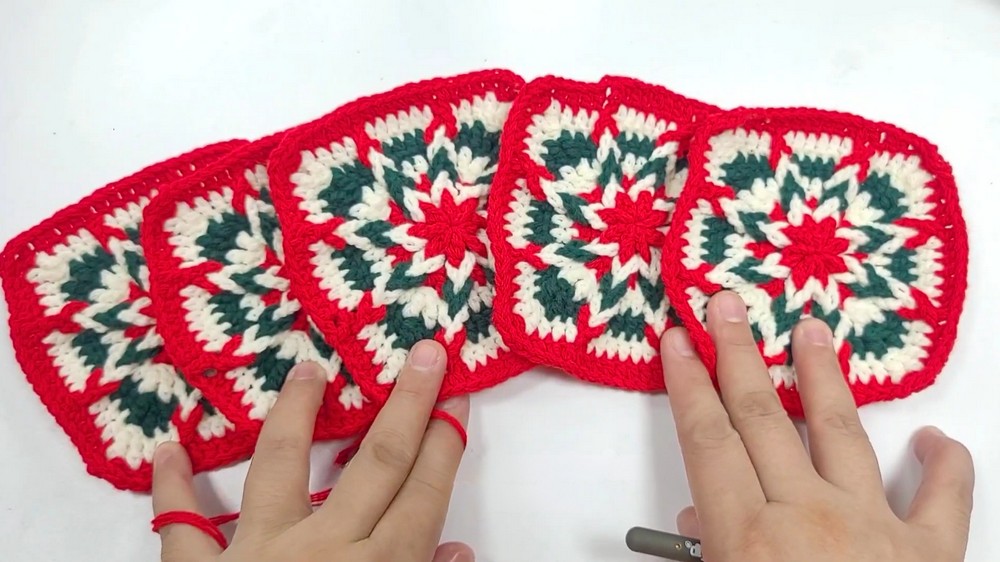 The reversible element is achieved by connecting the granny squares and base in a way that allows the outer design to be flipped effortlessly.