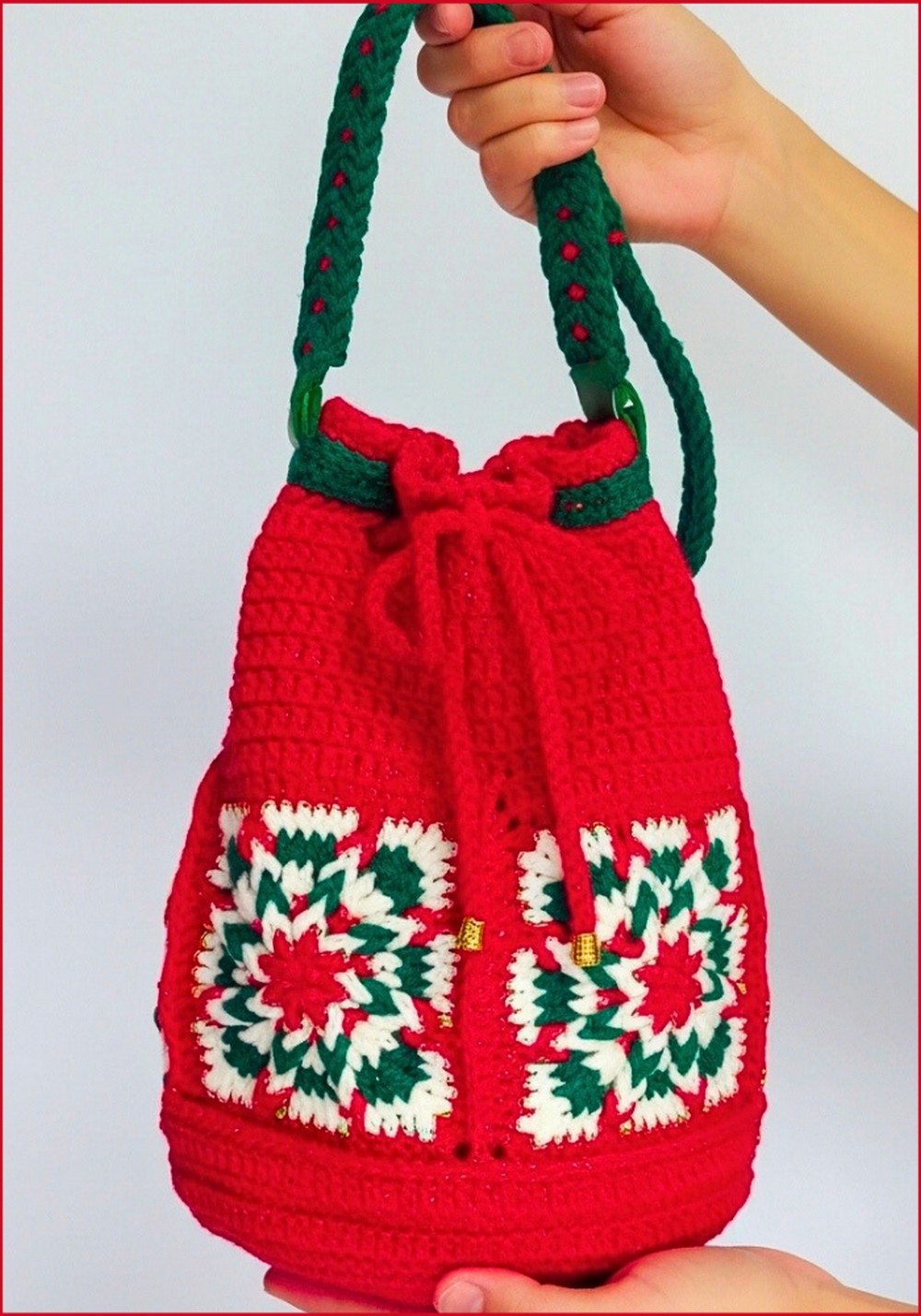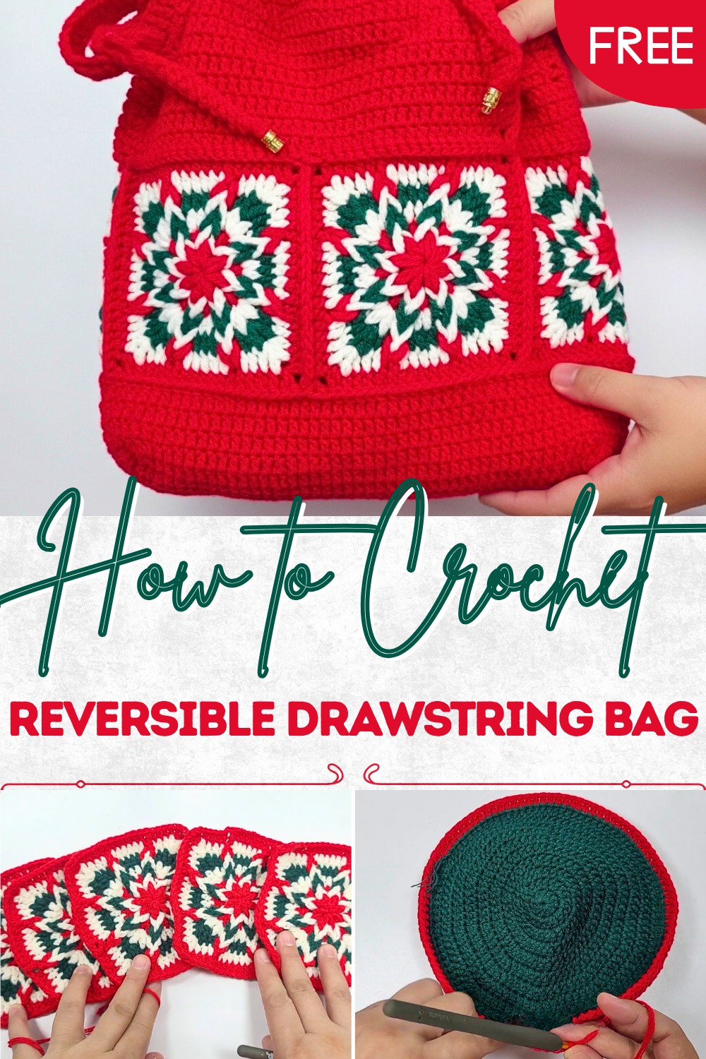 This Crochet Reversible Drawstring Bag tutorial provides a step-by-step pattern to crocheting a stunning reversible bag using inverted granny square motifs combined with other dynamic crochet techniques like Jacob’s Ladder Stitch and Romanian cord. Perfect for beginners and intermediate crocheters alike, this project is customizable, practical, and impressive in its final form.
