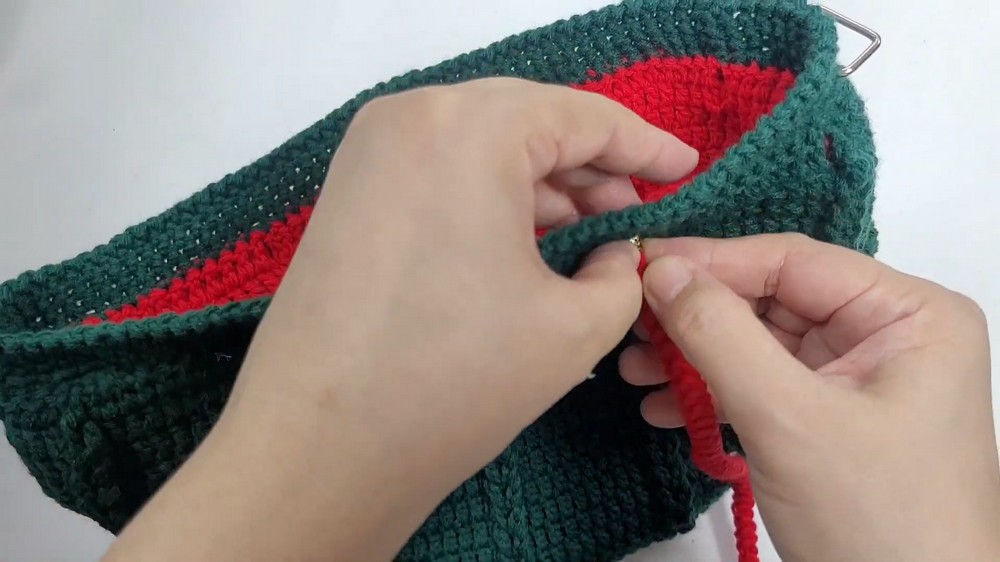 To ensure the bag maintains its shape, plastic canvas can be added for reinforcement during construction. The edges are finished using single crochet and crab stitches for a clean, polished look.