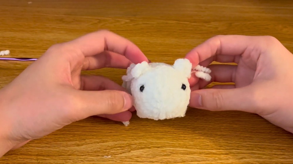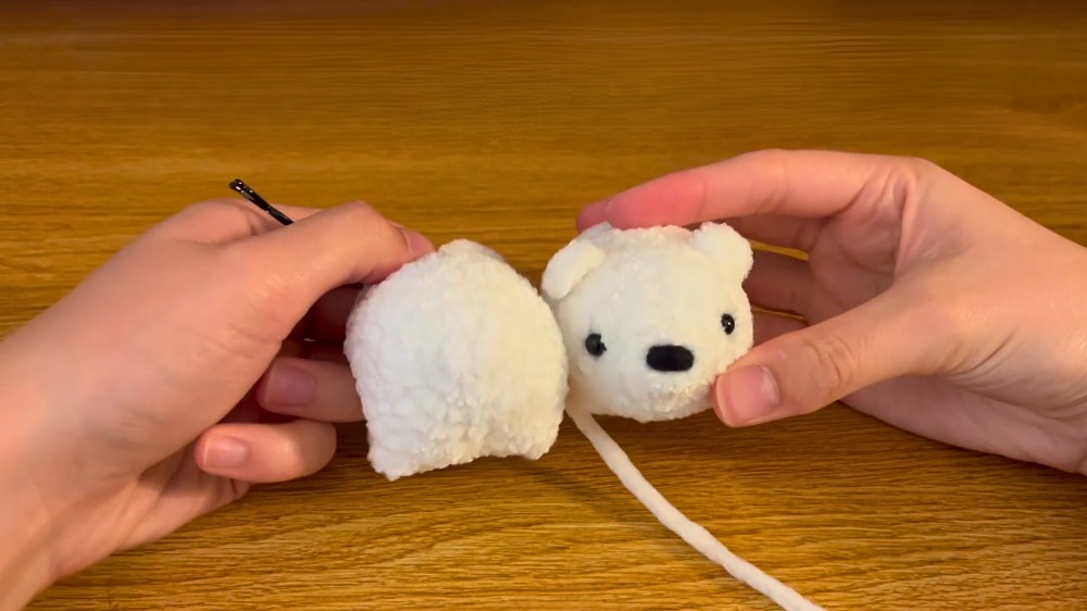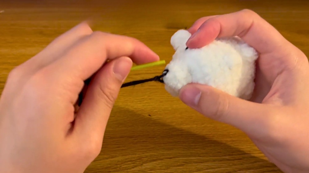 - Attach safety eyes between the 4th and 5th rounds. Push the bobble stitches outward as you stuff the polar bear.