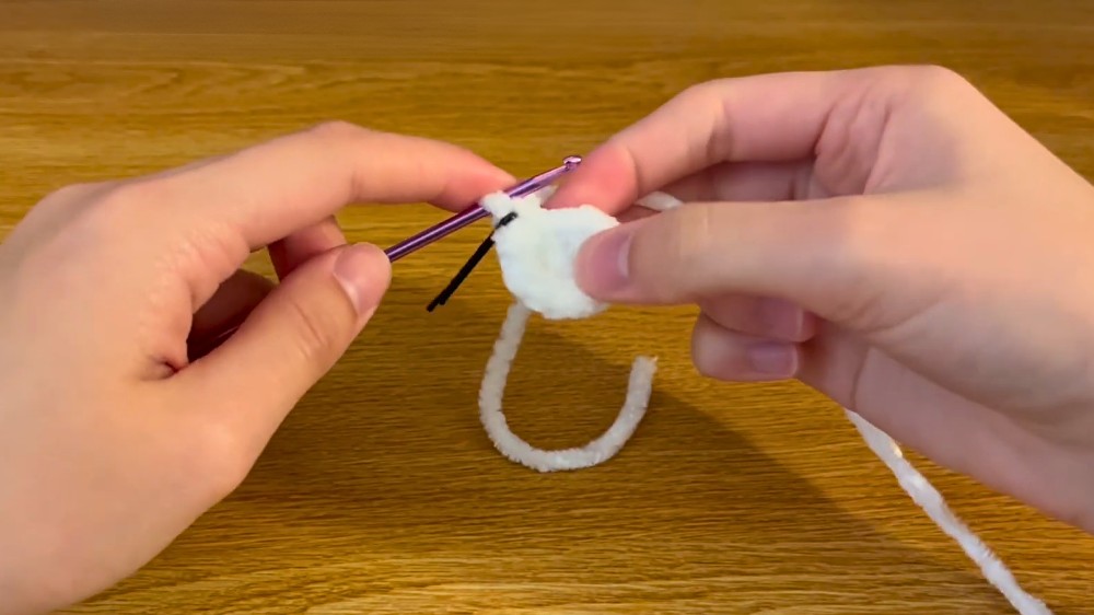 - Round 1: Make 6 single crochets in a magic ring. Don’t worry if working with fluffy yarn takes multiple attempts.