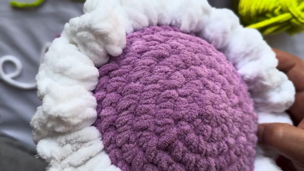 - Bouquet/base is crocheted in the round, increased outwards, then decreased to close.