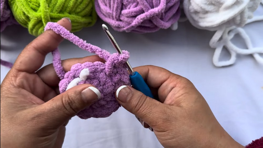 - Note: Continue to increase each round for a wider base by simply adding 1 more sc between increases (e.g., next round would be [1 sc in next 6 sts, 2 sc in next st], etc.)