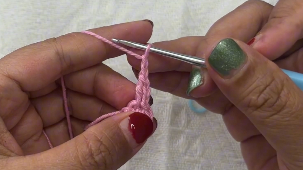 - Chain 2 again while hiding the yarn tail at the back.