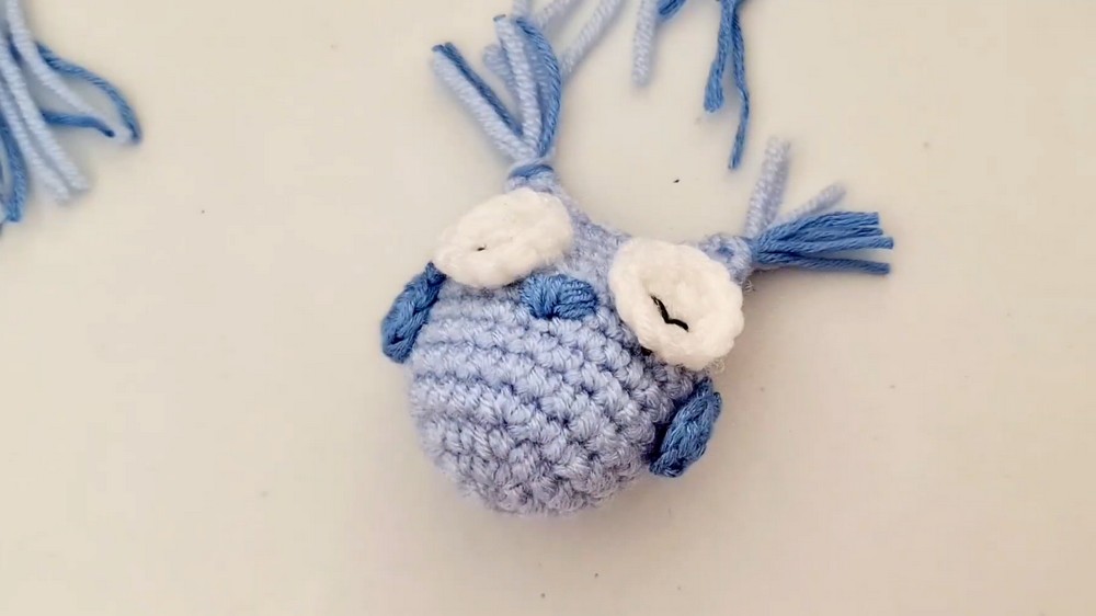 As finishing touches, stuffing the body of the owl appropriately provides shape and volume without appearing bulky. Lastly, attaching a secure loop and keychain ring converts this mini owl into a practical and stylish accessory for everyday use.