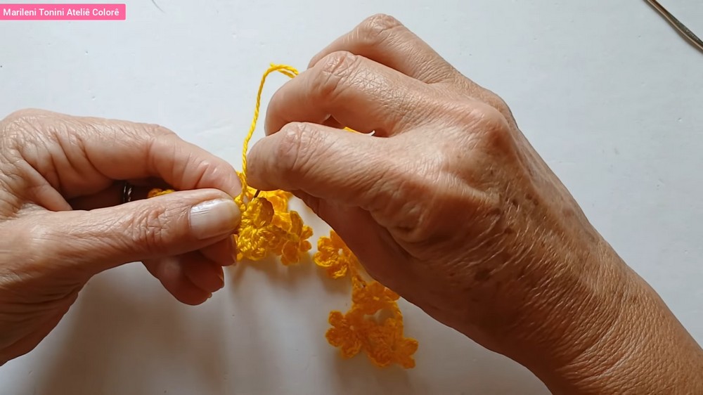 The pattern begins by forming the necklace base, with individual flowers repeatedly added at intervals to crochet a flowing design. To achieve the ideal length and symmetry, consistent tension is crucial when working through the stitches.