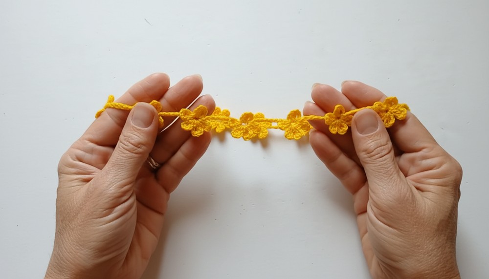 This project is suitable for beginners, as the techniques primarily involve basic stitches (chain, slip stitch, and double crochet). However, maintaining consistent tension and symmetry between flowers might require a little practice.