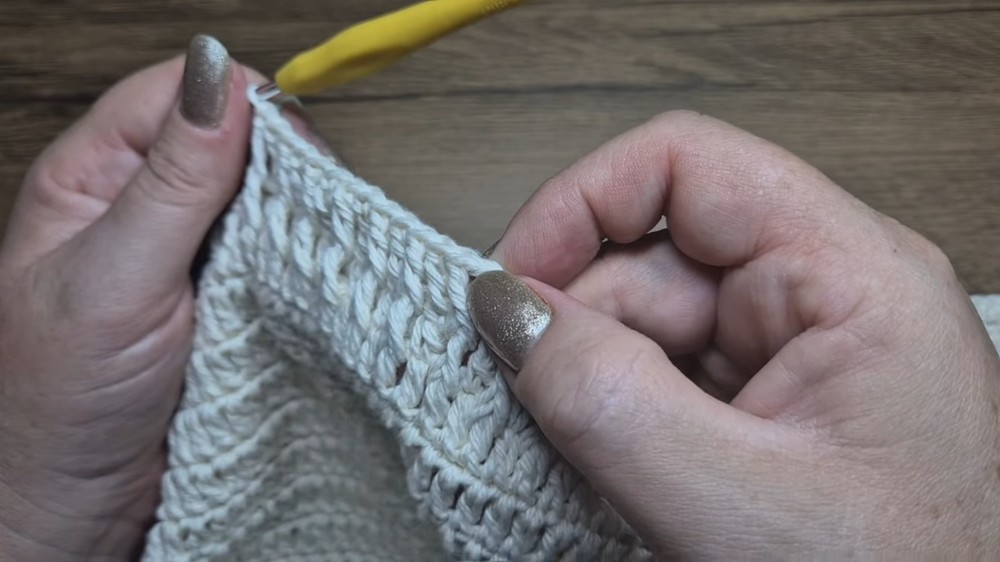 Add additional rows to reach your desired length while maintaining even tension throughout the stitching.