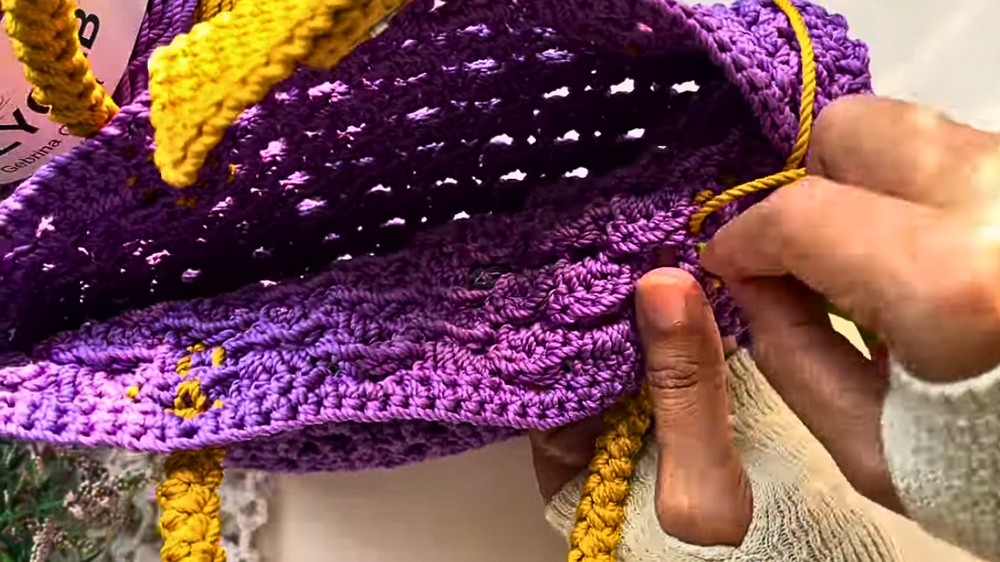 You can finish the tote by adding embellishments like small crochet appliqués, borders, or colorful tassels for a personal touch.